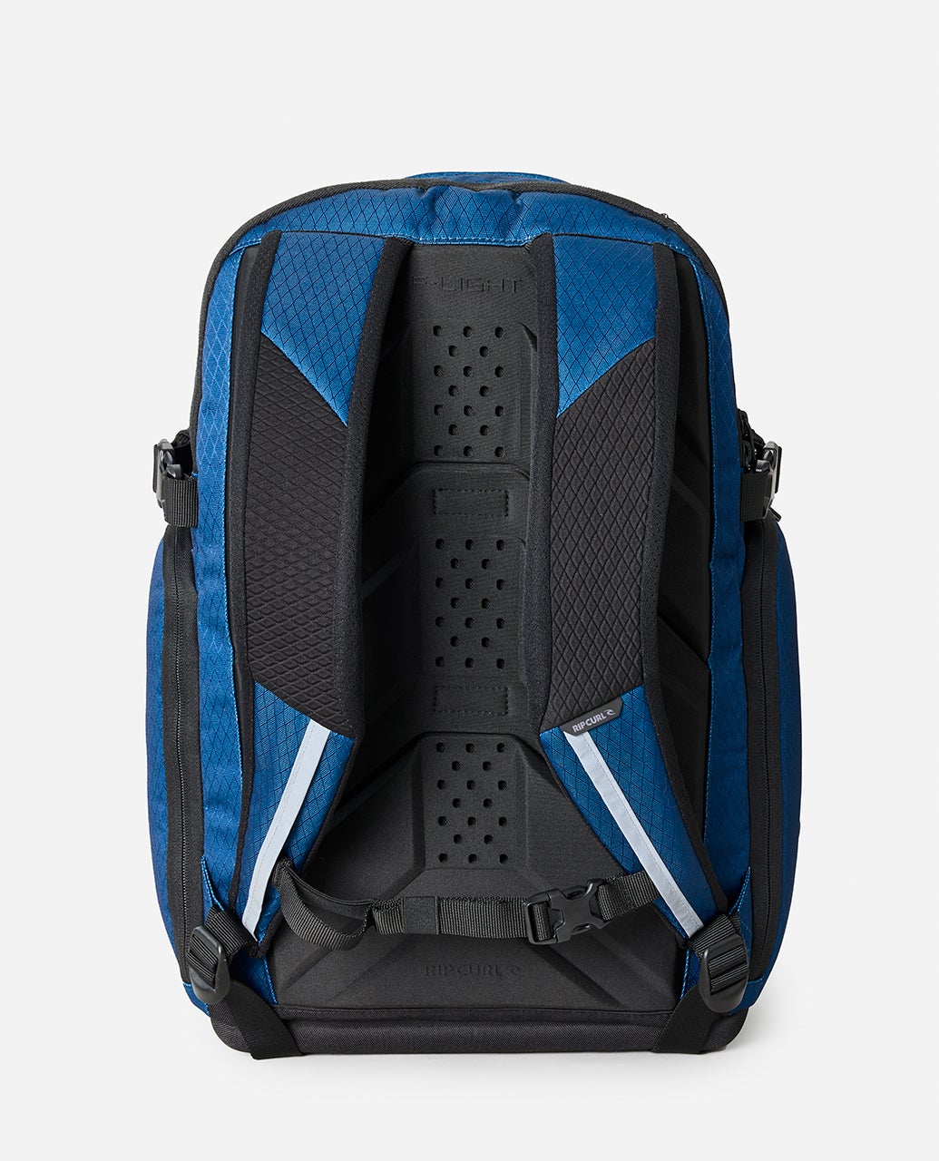 A versatile 35L backpack designed with durable recycled polyester and Hydro Protec finish for water resistance. It features a padded laptop section, fleece-lined sunglass pocket, breathable lightweight EVA shoulder straps, and a molded EVA front panel for extra protection. Additional perks include an insulated drink bottle pocket, molded EVA back panel, multiple organizer and utility pockets, and handy skate straps.