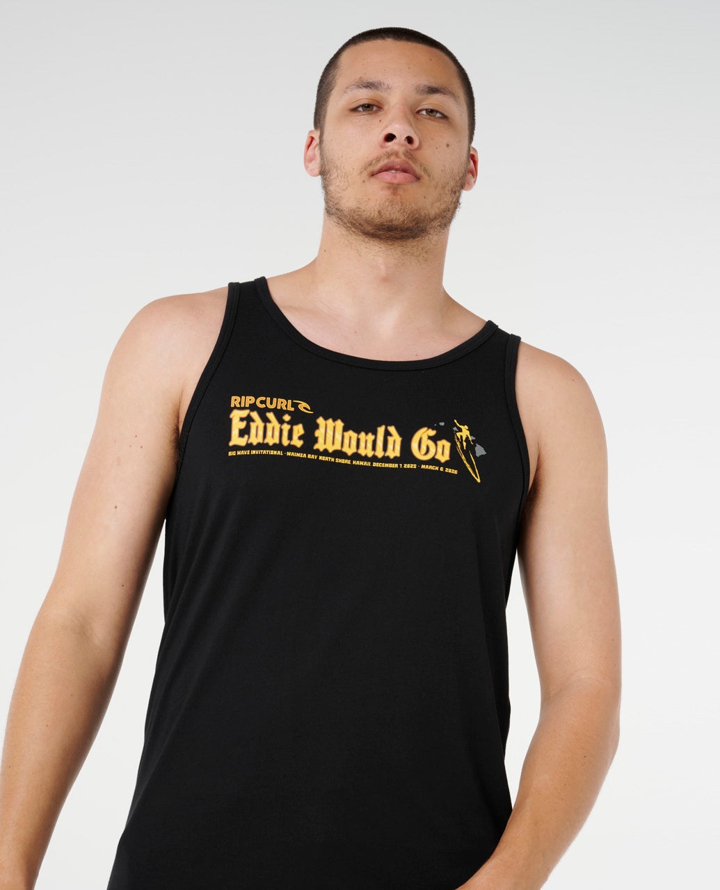 Tank fit cotton jersey crafted for warm days, featuring a bold front print and woven flag label. The Eddie Would Go Sticker Tank keeps the surf vibe front and center.