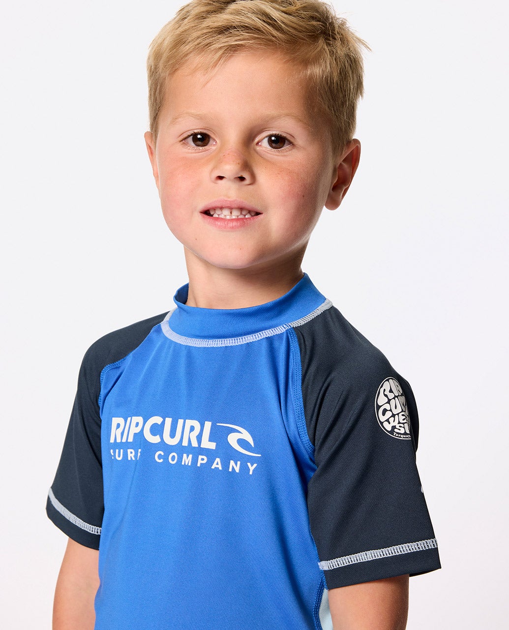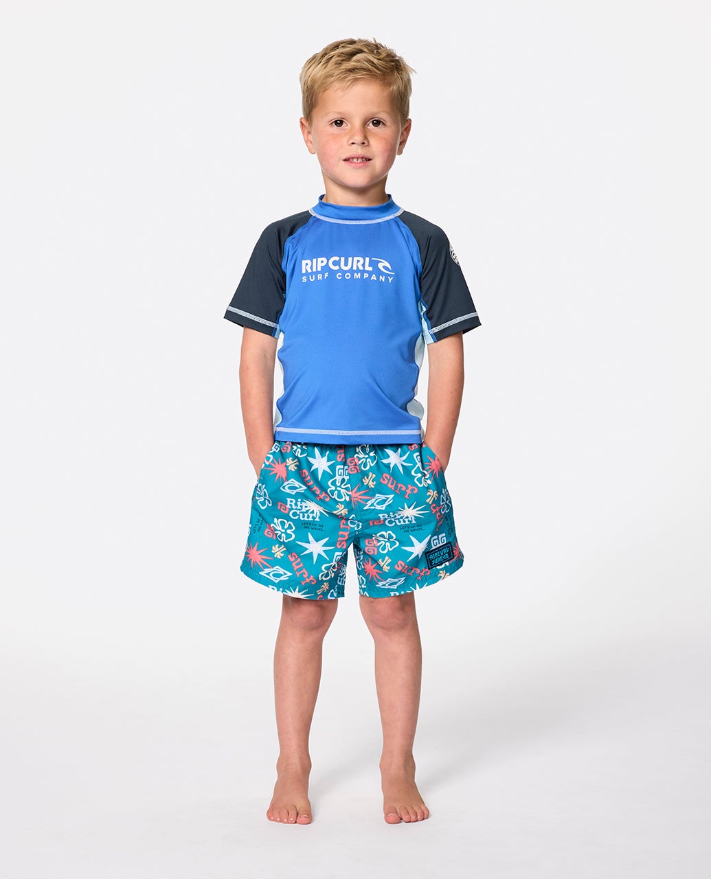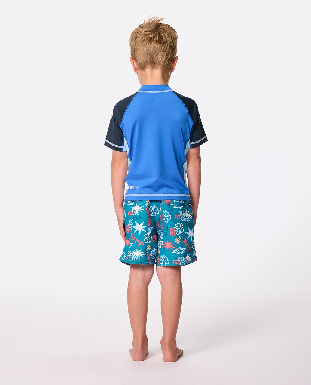 Sun-ready and snug, the Shock UPF Short Sleeve Rash Vest protects young surfers with UPF 50+ coverage and a secure elastic loop. Flatlock stitching and bold front prints complete the look for beach days.
