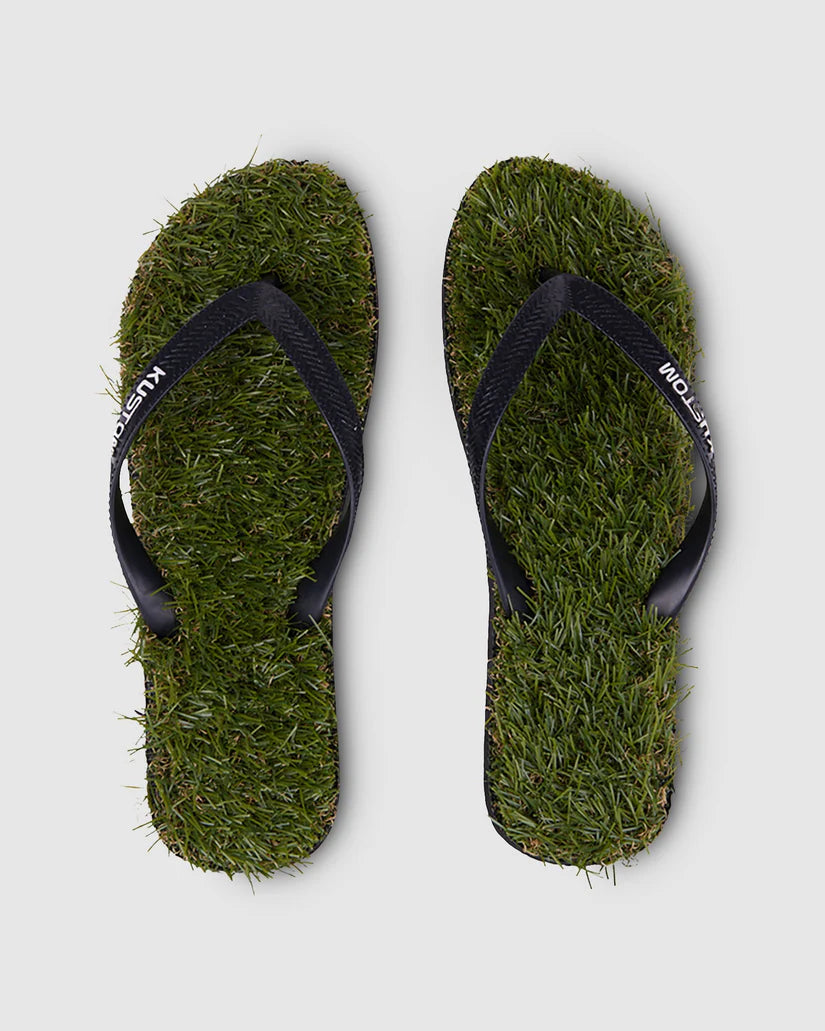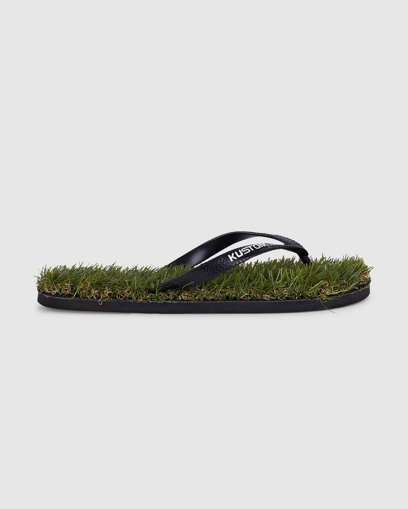 KUSTOM MENS KEEP ON THE GRASS THONG Slim profile Classic rubber strap Lush faux grass footbed EVA outsole