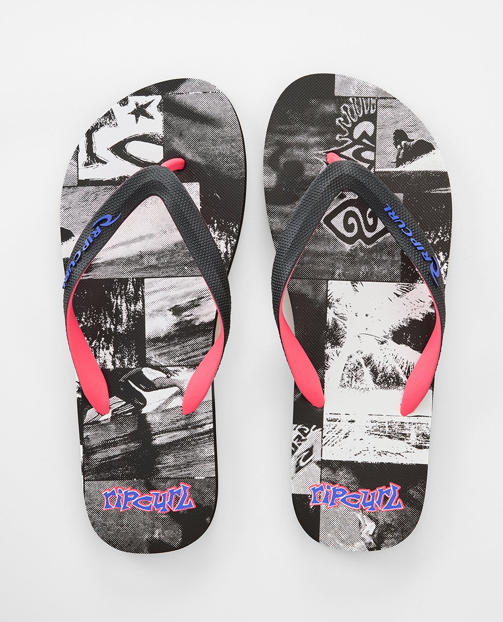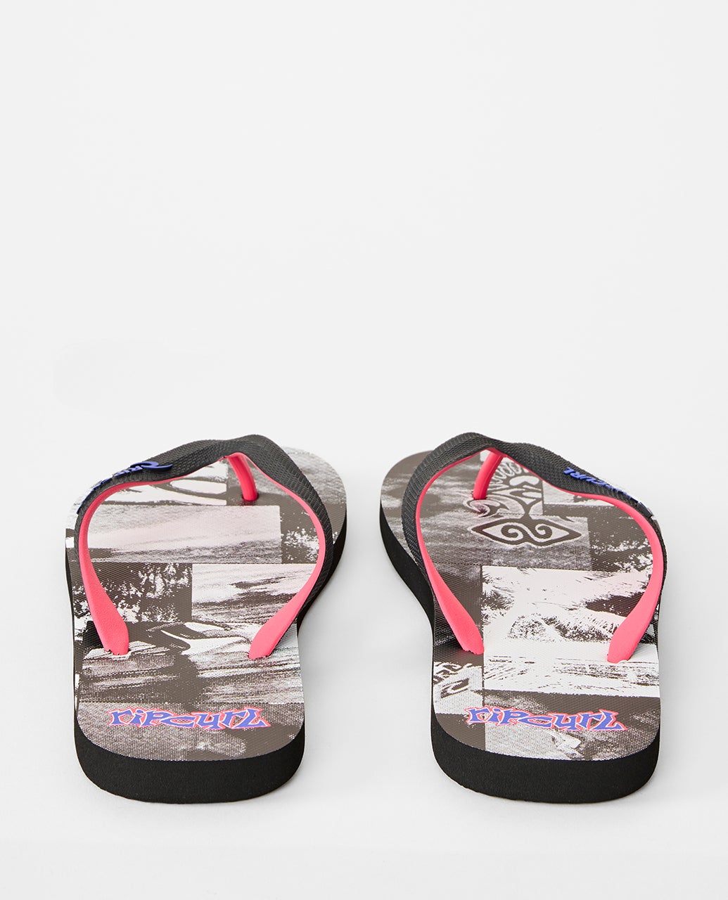 Raw Energy Thongs are constructed from PVC synthetic rubber with Zori design, ergonomic molded strap, and BLOOM™ algae-blended EVA midsole and outsole, offering durable and lightweight surf-inspired sandals.