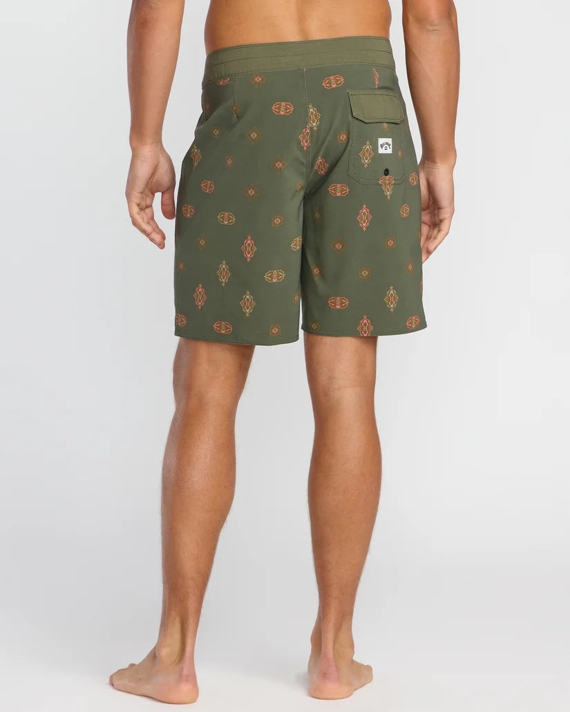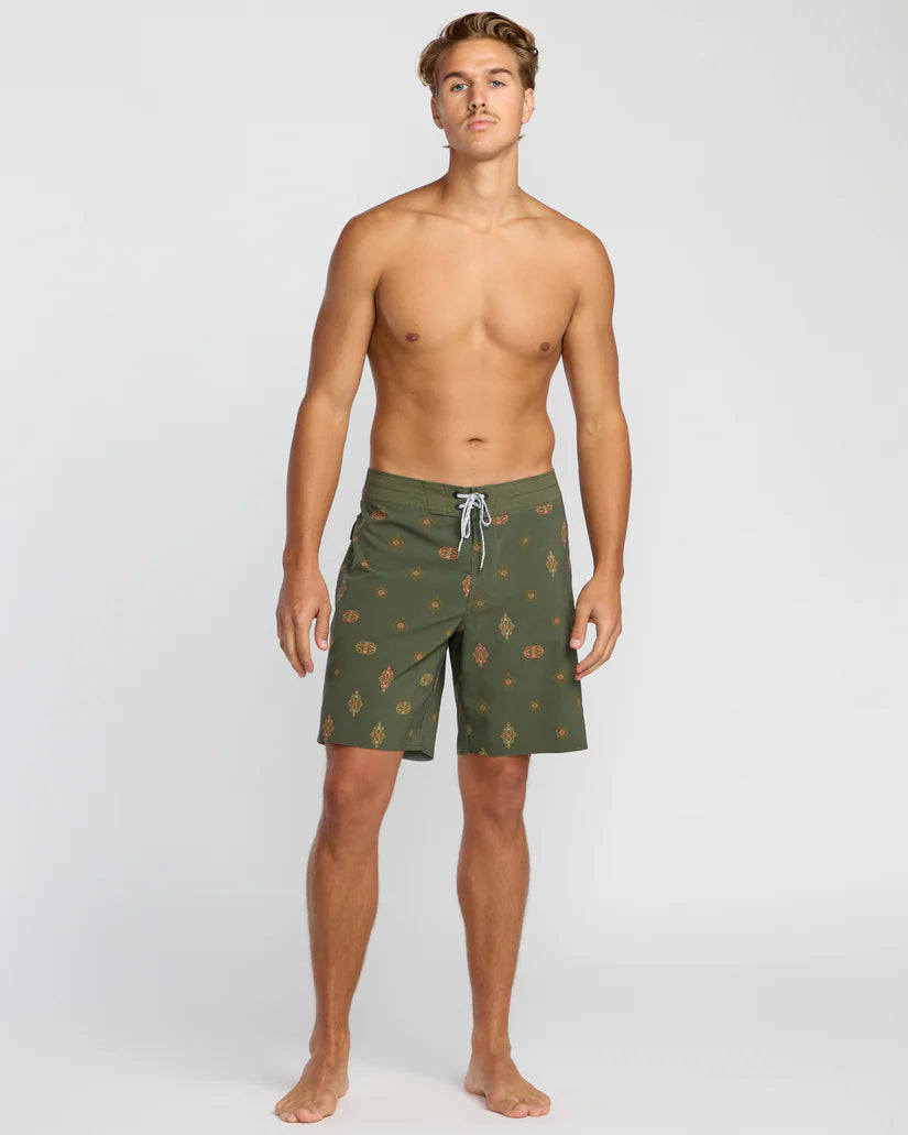Dominate the waves with our Billabong Sundays Pro Performance Boardshorts, offering 4-way stretch and 19" performance fit for unrestricted motion. Featuring all over sublimation prints, a back patch pocket, fixed waist, and woven branding. Featured here in the Military colorway.