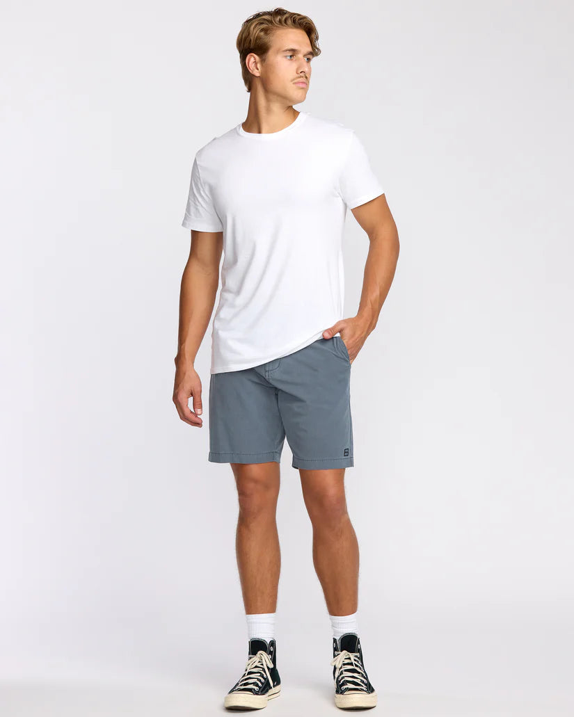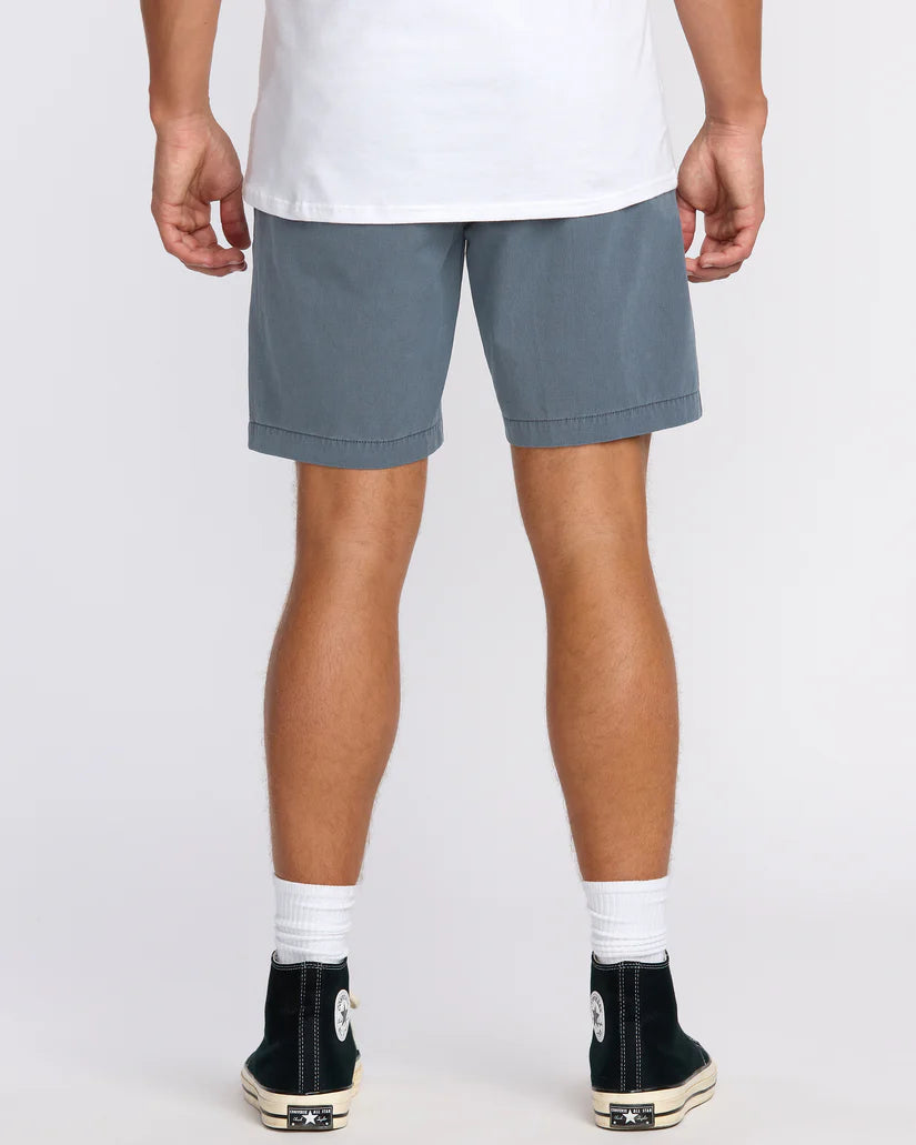 Versatile hybrid shorts with 4-way stretch cotton poly fabric move seamlessly from waves to street. Garment dyed with DWR, they feature a relaxed chino style, zipper pockets and button fly - perfect for active guys seeking modern amphibious style. Featured here in the Midnight Blue colorway.