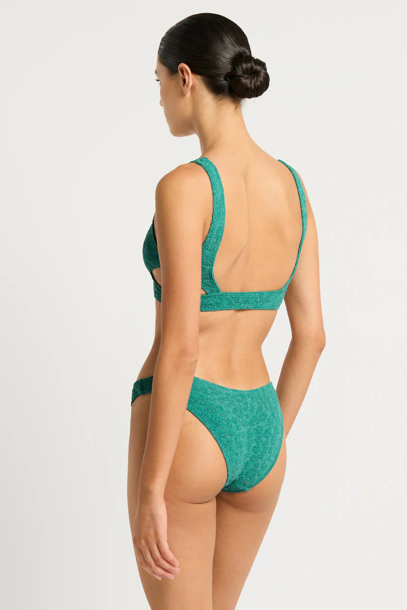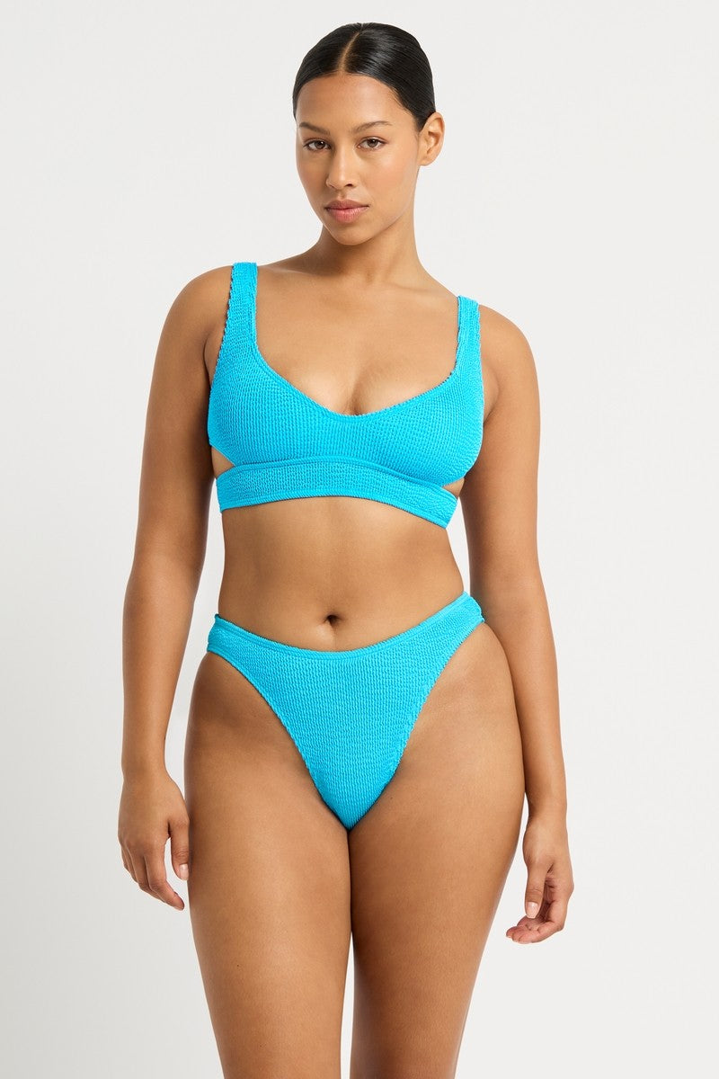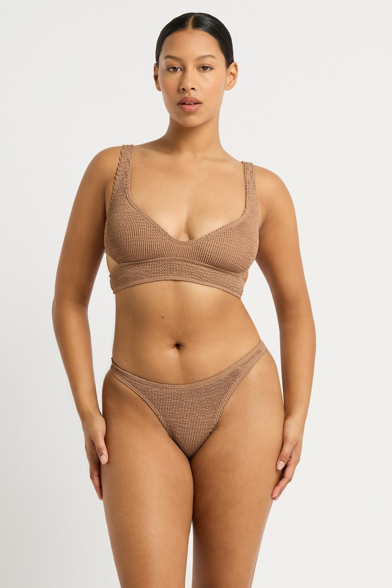 Meet the Nino, one of our best-selling bikini tops, with chic low scooped back and side cut-outs. Offering medium to full support, thanks to its wide shoulder straps and fitting underbust band. Handmade + designed in the sunkissed shores of Sydney, from our unsized The Authentic Crinkle™.