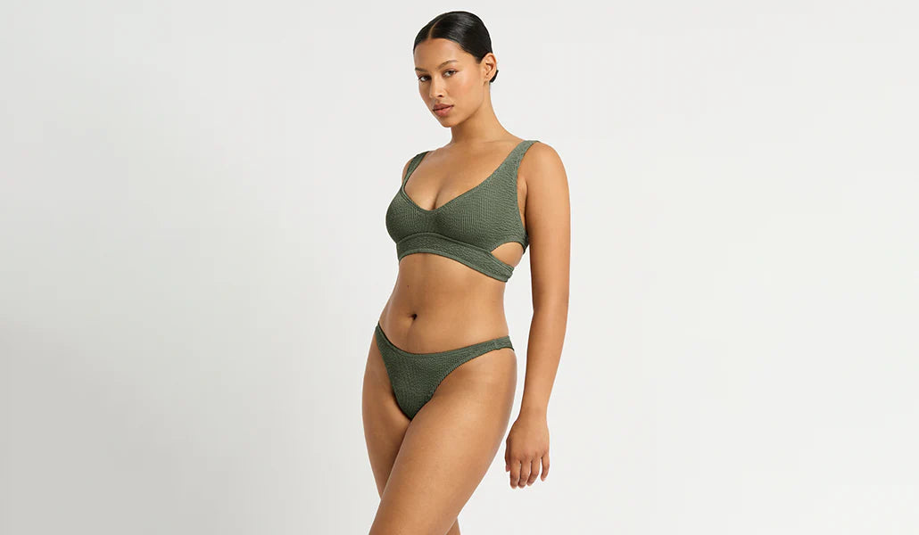 Our Eco crinkle is soft and luxurious to the touch, fitting like a second skin. Made from recycled yarn which is manufactured exclusively by a premium Italian mill using leading environmental processes, including reduced carbon dioxide emissions, 100% renewable energy + less water consumption.